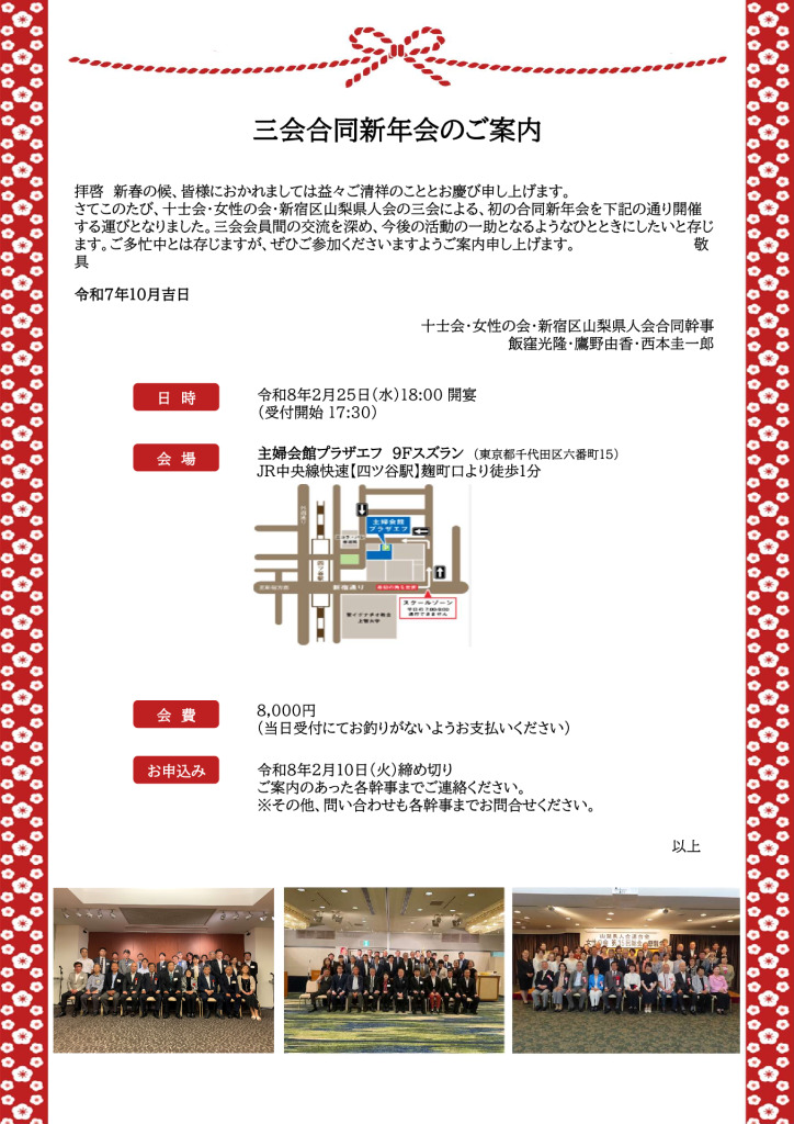 令和8年2月25日(水)18:00~三会合同新年会のご案内